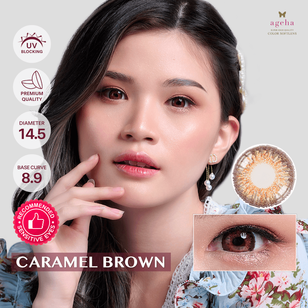 Softlens ageha caramel brown merupakan salah satu seri selection yang populer di Indonesia. Dapat dipakai untuk beraktivitas sehari-hari di sekolah maupun kantor. Cocok untuk Anda yang ingin menggunakan softlens warna setiap hari dan tersedia dalam beragam minus.
